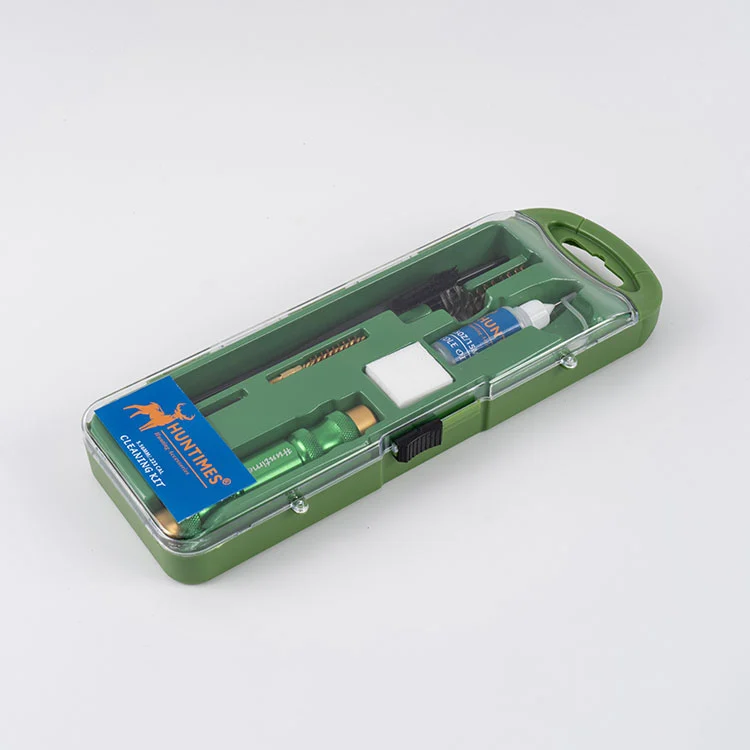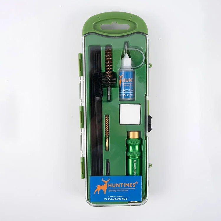 Komplet za čiščenje pištole iz aluminijeve zlitine 5.56MM 223 Cal vsebuje vrsto orodij za čiščenje 5.56mm/. pištole kalibra 223, kot so čistilne krtače, čistilne palice, čistilni obliži itd. Ta orodja lahko temeljito odstranijo ostanke smodnika, umazanijo in maščobo v notranjosti pištole ter tako zagotovijo natančnost in zanesljivost pištole.