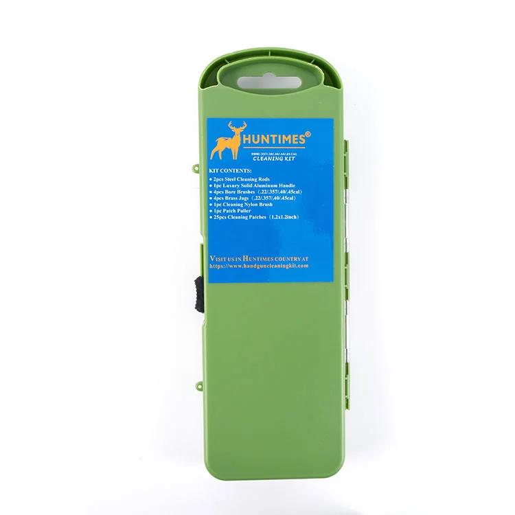 Naš čistilni komplet za pištolo iz aluminijeve zlitine vsebuje 2 jekleni palici, 1 luksuzni aluminijasti ročaj, 4 ščetke z izvrtinami (. 22/. 357/. 40/. 45), 4 medeninaste konice (. 22/. 357/. 40/. 45), 1 najlonsko čistilno krtačo, 1 snemalec zaplat in 25x1. 2x1. 2 obliža za čiščenje. Zasnovan je za optimalno delovanje in dolgotrajno vzdržljivost. Logotip ročaja, logotip nalepke na sprednji strani škatle in logotip s podrobnostmi o izdelku na zadnji strani lahko oblikujete glede na vaše potrebe. Dobrodošli, da se posvetujete z nami!